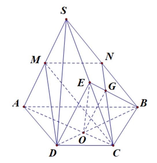 Cho hình chóp $S.ABCD$ có đáy là hình thang, $AB\,\text{//}\, CD$ và $AB = 2CD$, O là giao điểm của hai đường thẳng AC và BD. Gọi $M$, $N$ lần lượt là trung điểm $SA$ và $SB$.