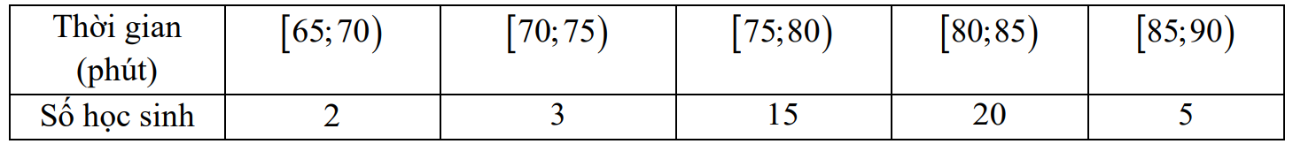 Thời gian hoàn thành bài kiểm tra cuối học kỳ II môn Toán của các bạn học sinh lớp 12A được cho trong bảng sau: